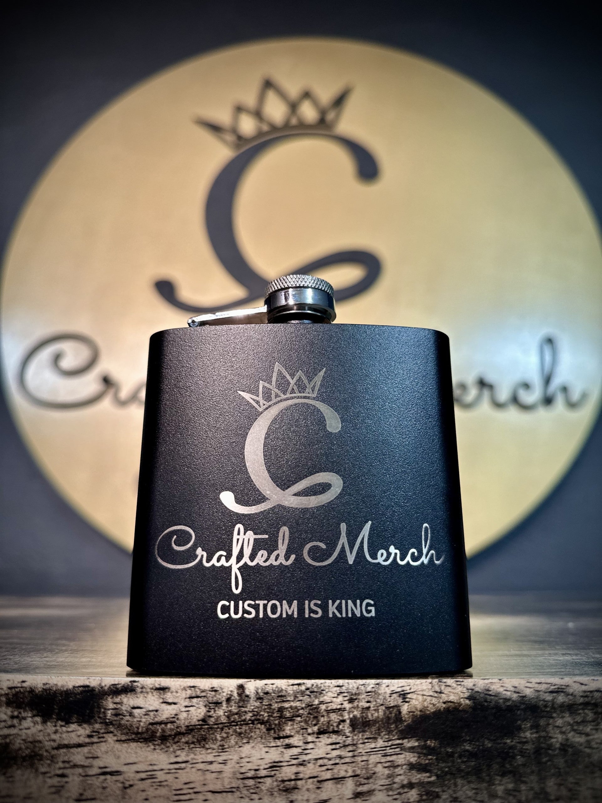 Our 6 oz. stainless steel flasks are powder coated for an exceptional matte, textured, look and feel. Our flasks engrave silver for brilliant contrast! Personalize with your logo, image or text to create stunning Bridesmaid Gifts, Promotional Products, Corporate Gifts, Gifts For Her or Gifts For Him. Each flask comes with attached leak resistant cap.