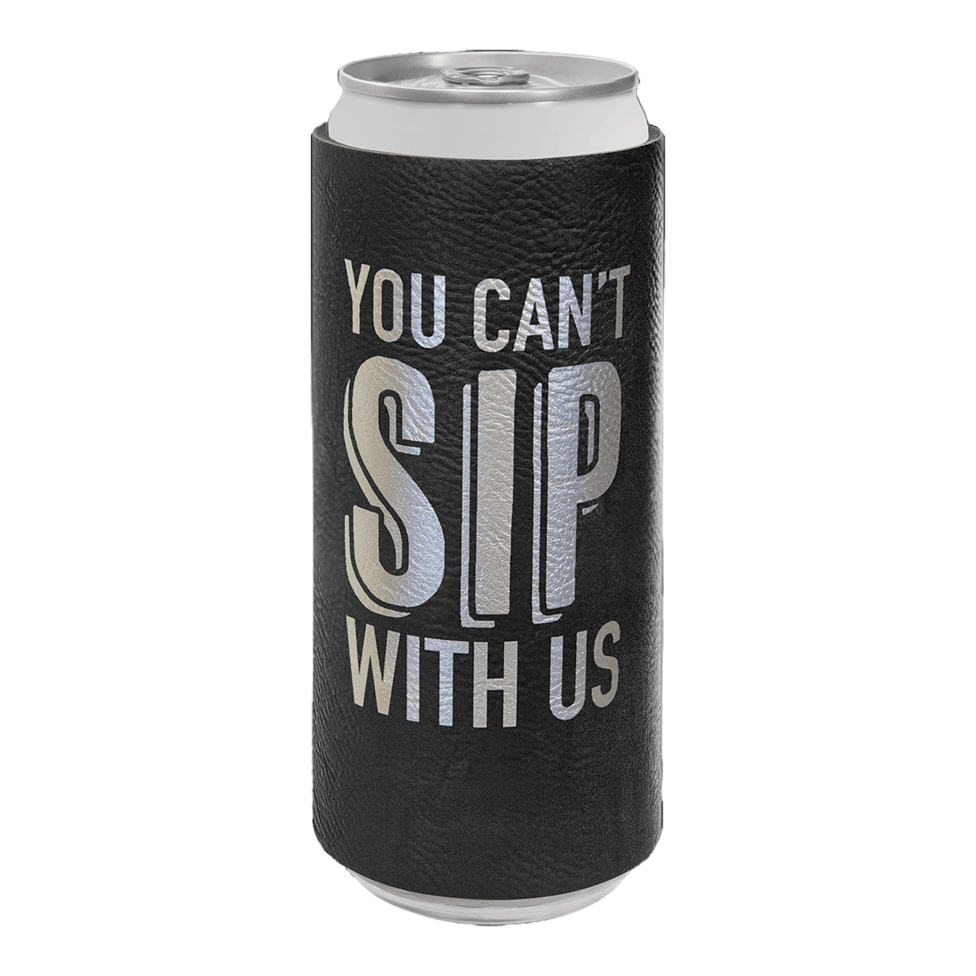 Your Logo on Slim Can Cooler Leatherette Beverage Holder